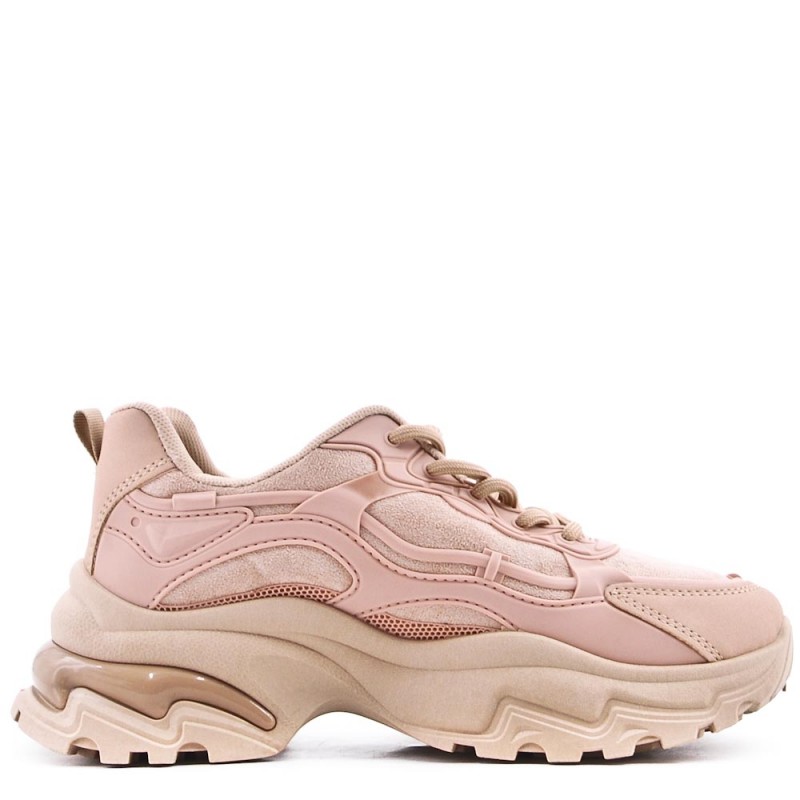 Women's mixed-material lace-up trainer