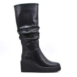 Vendido por 12 paresDESCRIPCIÓN Bota de piel sintética Tacón: 5cm Parte superior: 50 cm COMPOSICIÓN Tejido principal: sintética Forro: sintética Suela: sintética