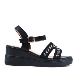 Vendu par lot de 12 pairesDESCRIPTION Sandale compensée à semelle espadrille Talon: 6cm COMPOSITION Tissu principal : PU Doublure: synthétique Semelle: synthétique