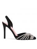 Sandale à talon en mix matières