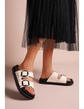 Claquette en mix matières pour femme